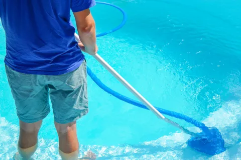 When your swimming pool tech vacuums your swimming pool, he uses a large professional-style vacuum. This vacuum...